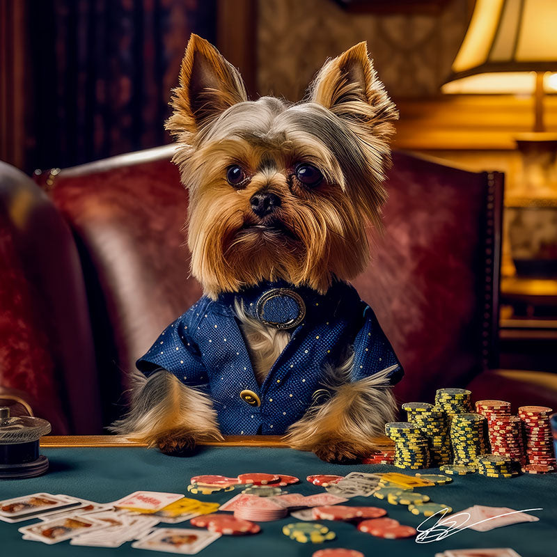 Yorkshire Terrier, a captivating and charming furry companion and innovative artistic creations, masterfully intertwining photographic compositions with mixed media elements on stunning ChromaLuxe Metal Prints. Limited edition are artist-signed and numbered, offering collectors a lasting, unique visual gem.