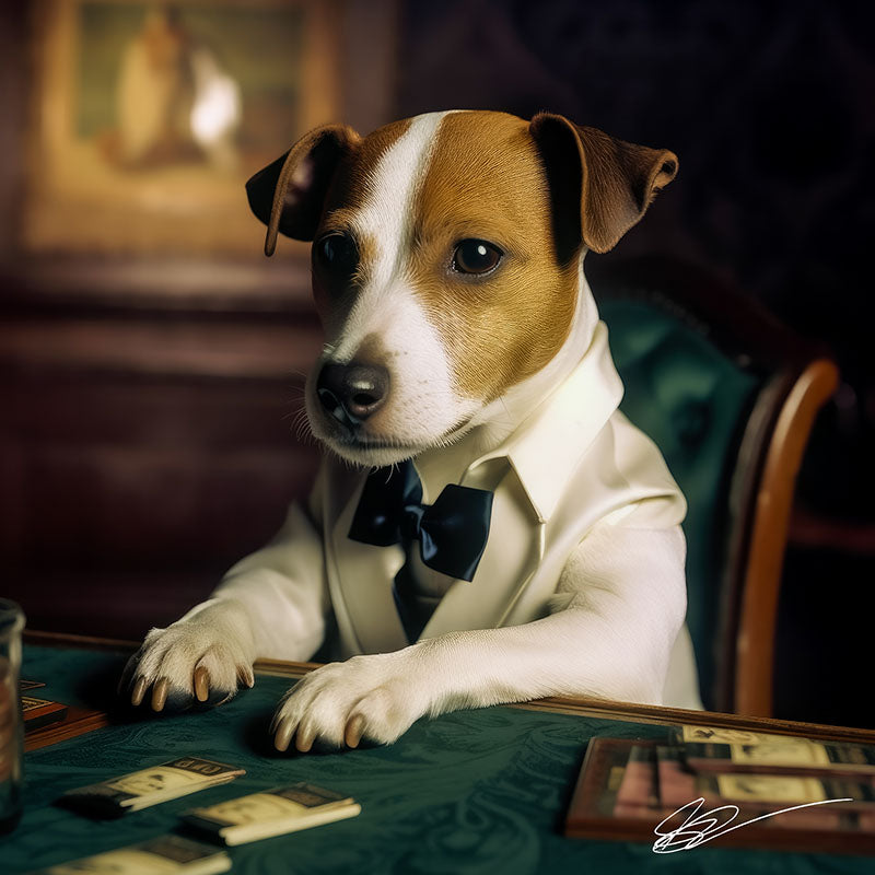 Jack Russel, a captivating and charming furry companion and innovative artistic creations, masterfully intertwining photographic compositions with mixed media elements on stunning ChromaLuxe Metal Prints. Limited edition are artist-signed and numbered, offering collectors a lasting, unique visual gem.
