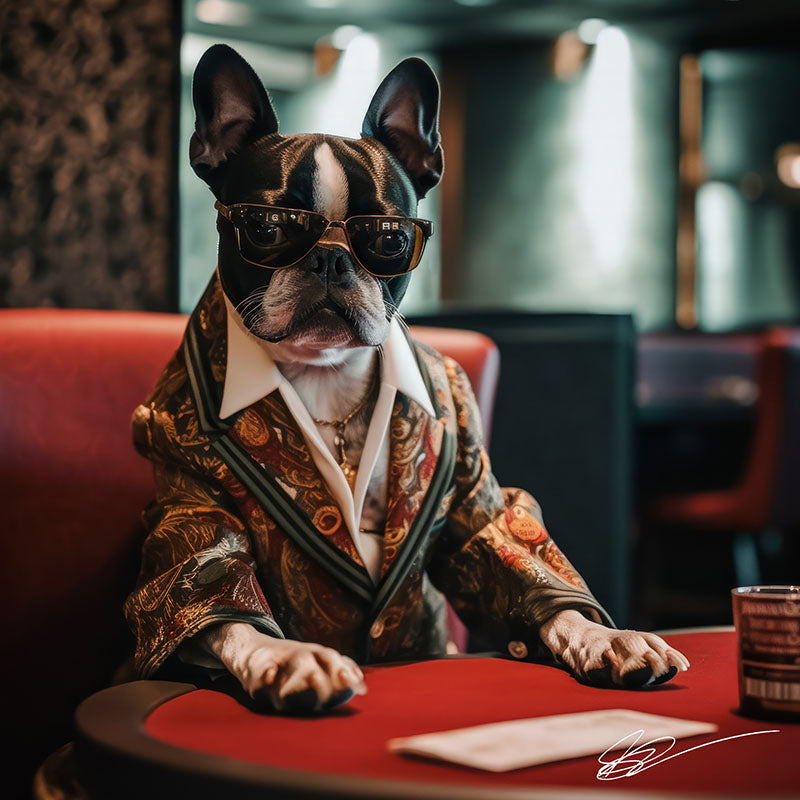 Boston Terrier, a captivating and charming furry companion and innovative artistic creations, masterfully intertwining photographic compositions with mixed media elements on stunning ChromaLuxe Metal Prints. Limited edition are artist-signed and numbered, offering collectors a lasting, unique visual gem.