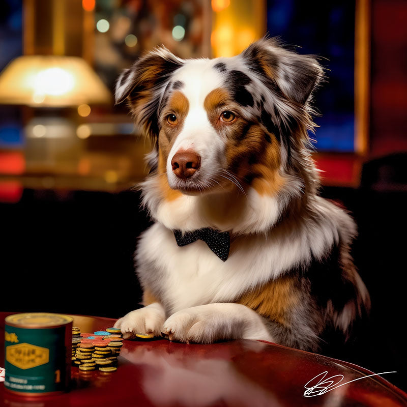 Australian Shepherd, a captivating and charming furry companion and innovative artistic creations, masterfully intertwining photographic compositions with mixed media elements on stunning ChromaLuxe Metal Prints. Limited edition are artist-signed and numbered, offering collectors a lasting, unique visual gem.