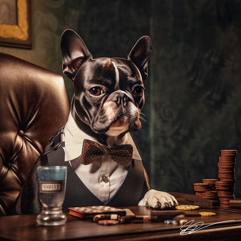 Boston Terrier, a captivating and charming furry companion and innovative artistic creations, masterfully intertwining photographic compositions with mixed media elements on stunning ChromaLuxe Metal Prints. Limited edition are artist-signed and numbered, offering collectors a lasting, unique visual gem.