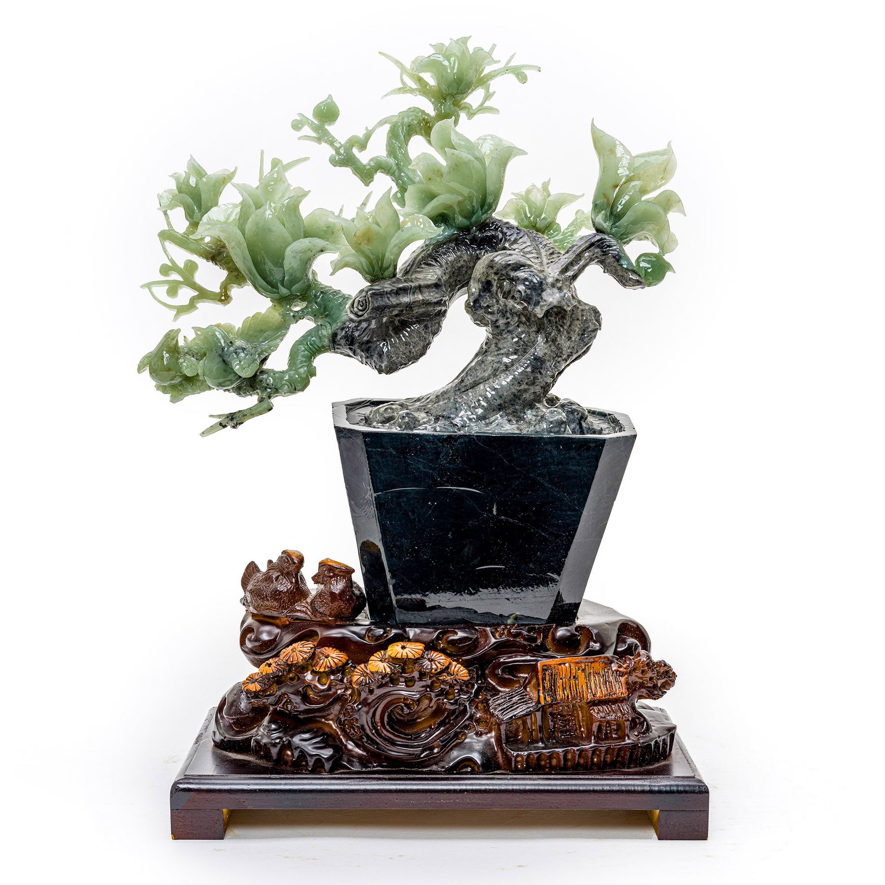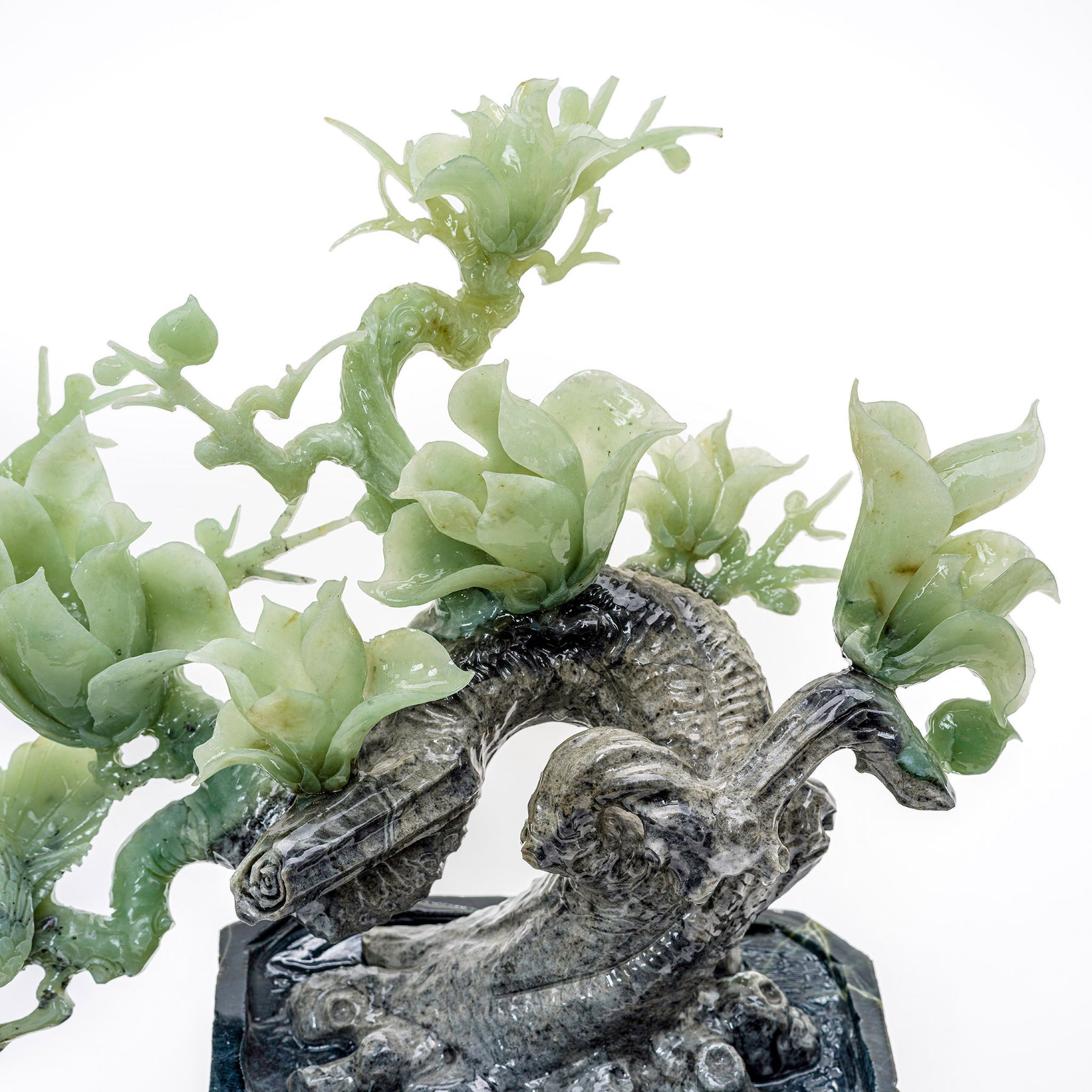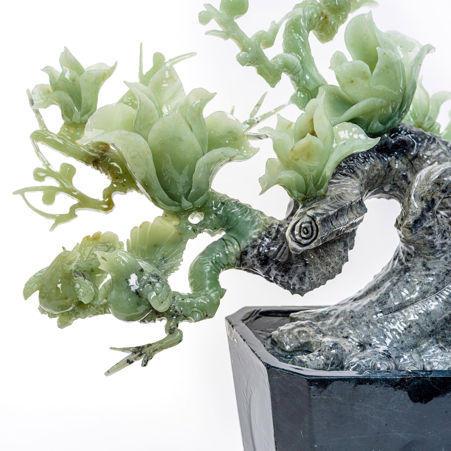 The sculpture, with its fluid lines and organic form, evokes a sense of growth and natural splendor. It's a piece that combines the timeless appeal of floral art with the sophistication of gemstone craftsmanship.