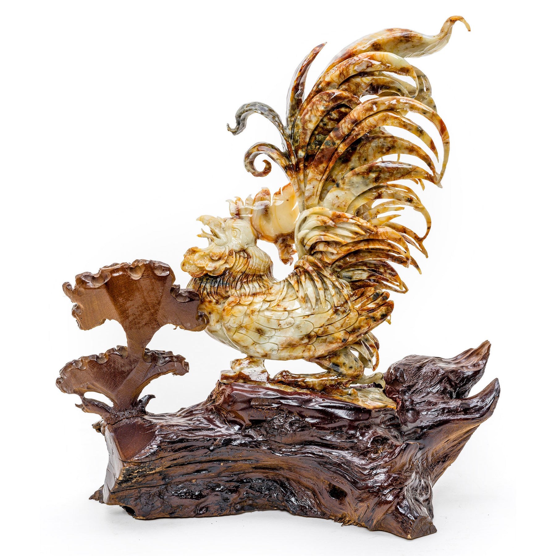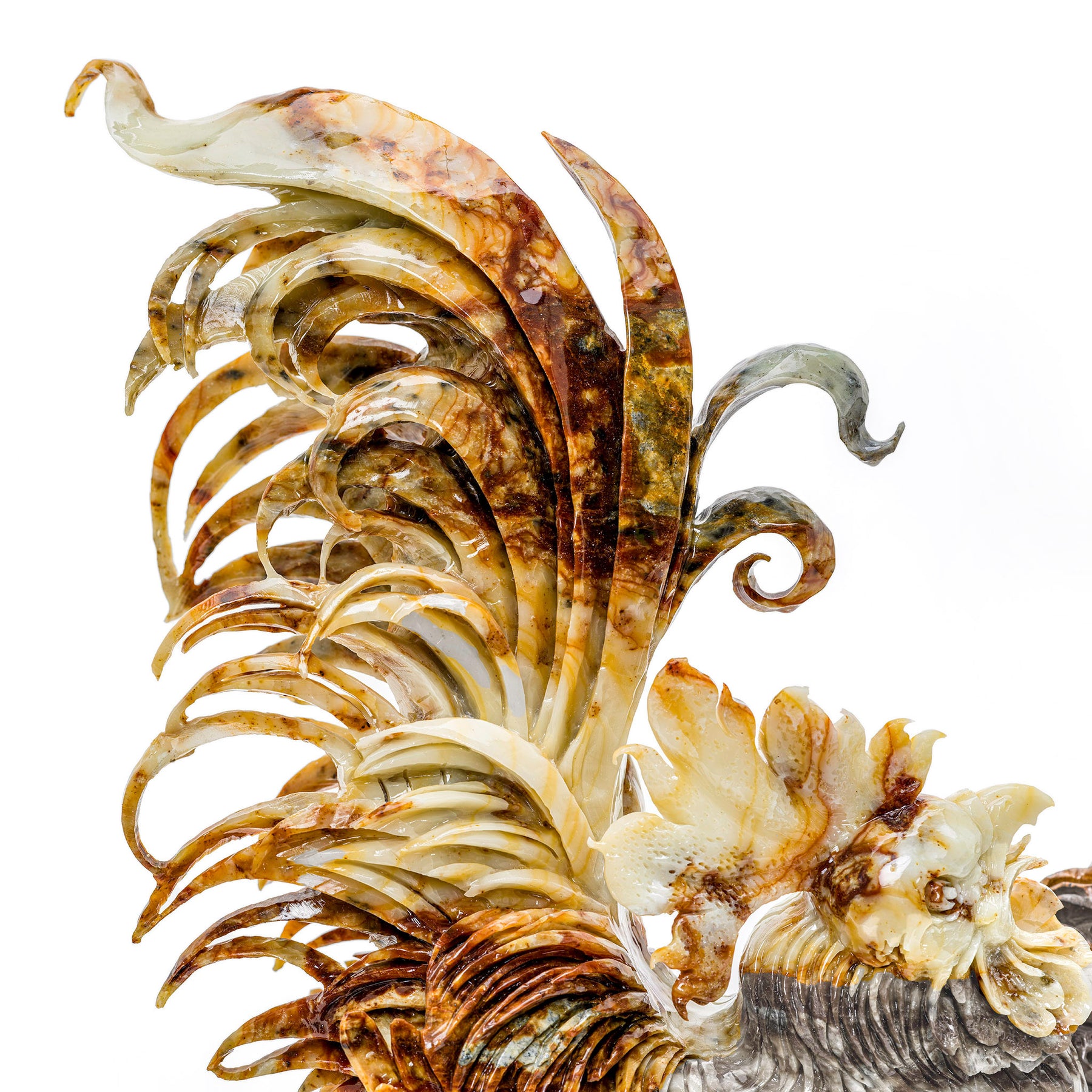 Agate sculpture of a rooster, a vigilant guardian figure.