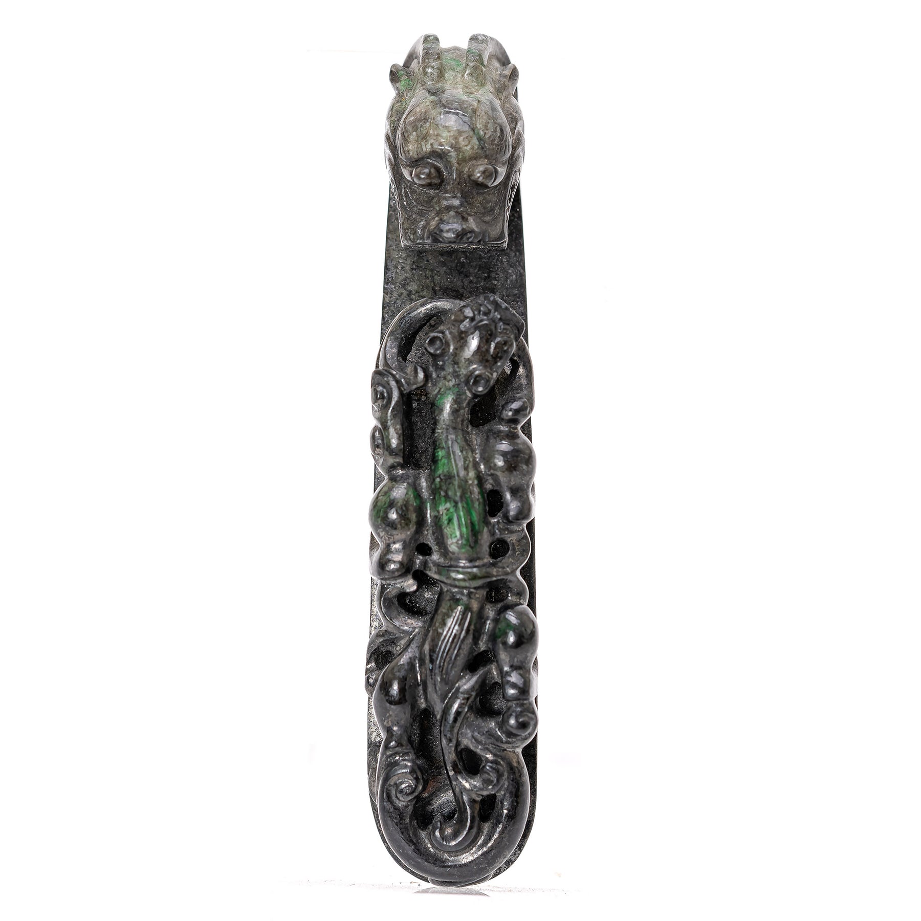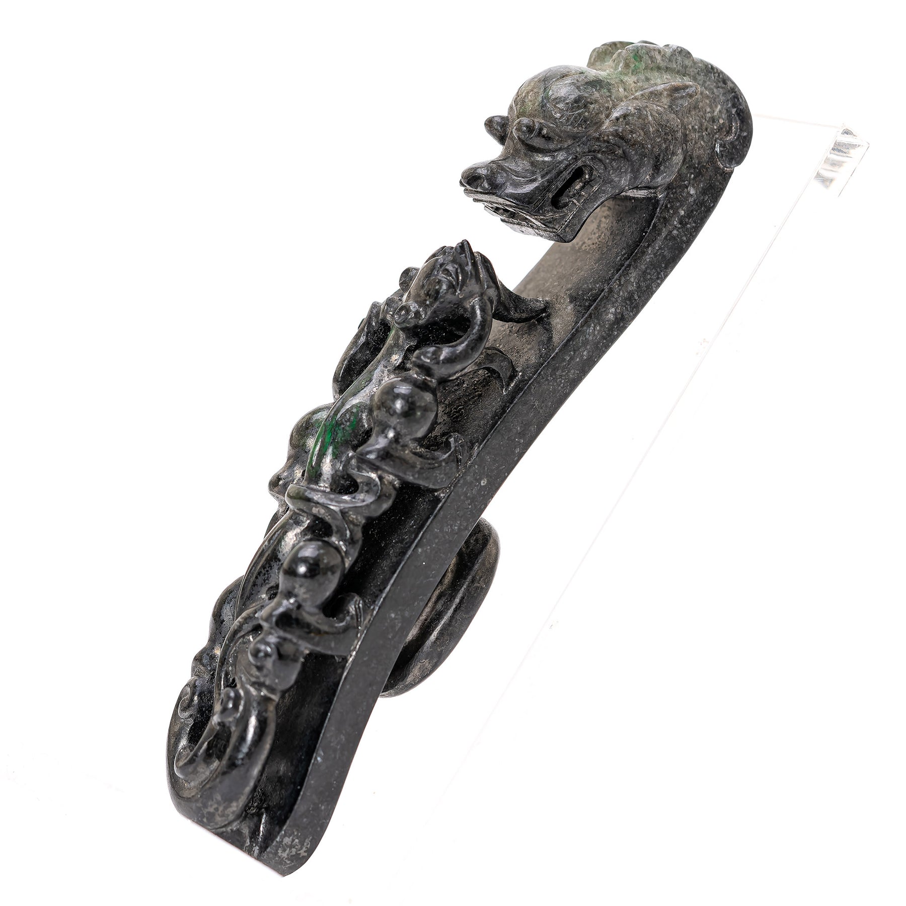 18th/19th Century grey & black jade belt buckle with slight green suffusions & dragon head terminal