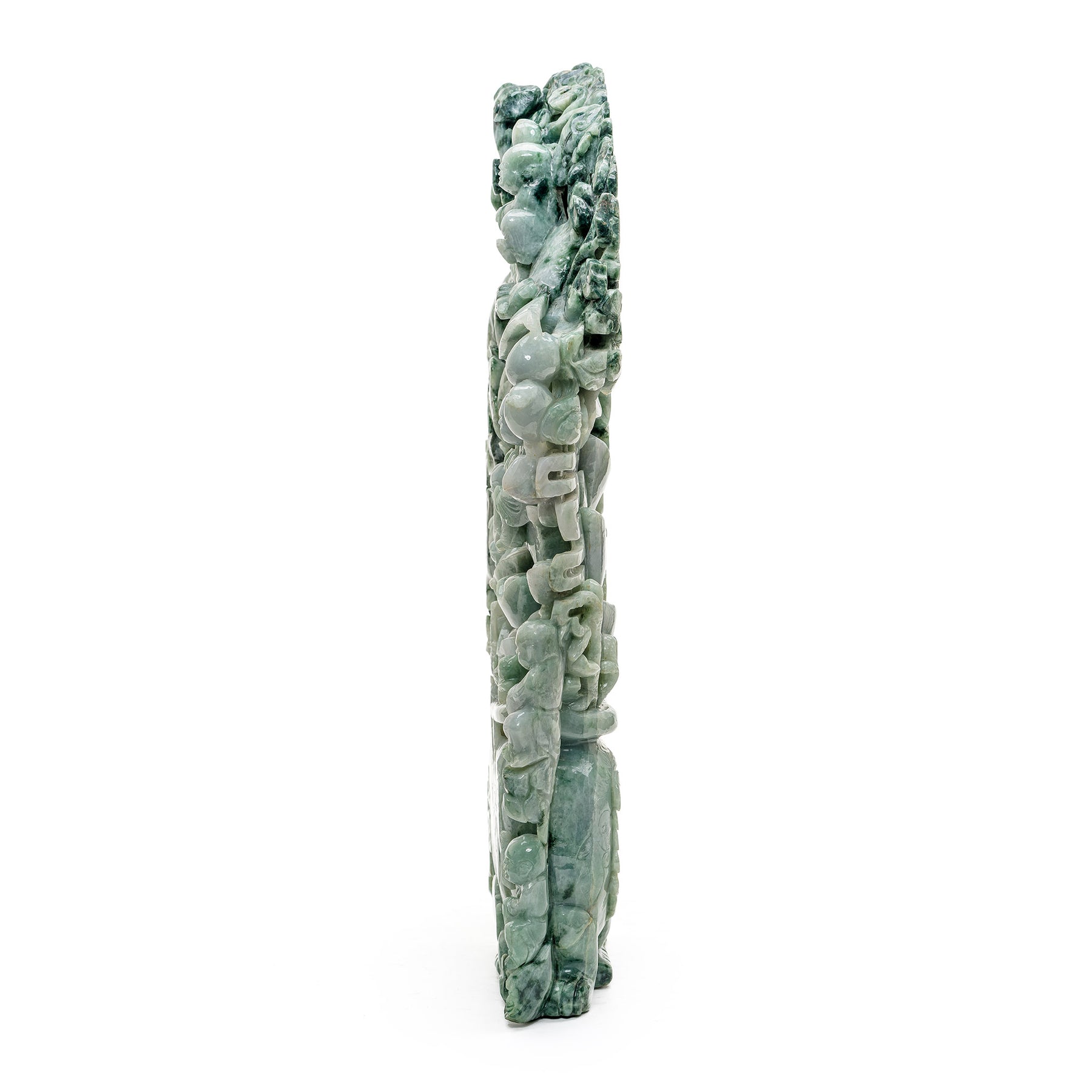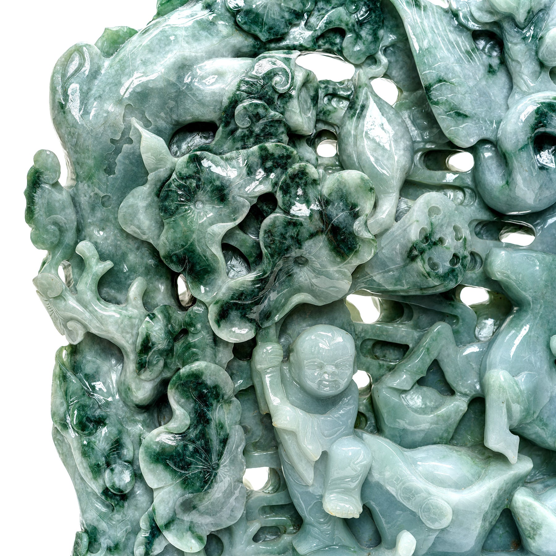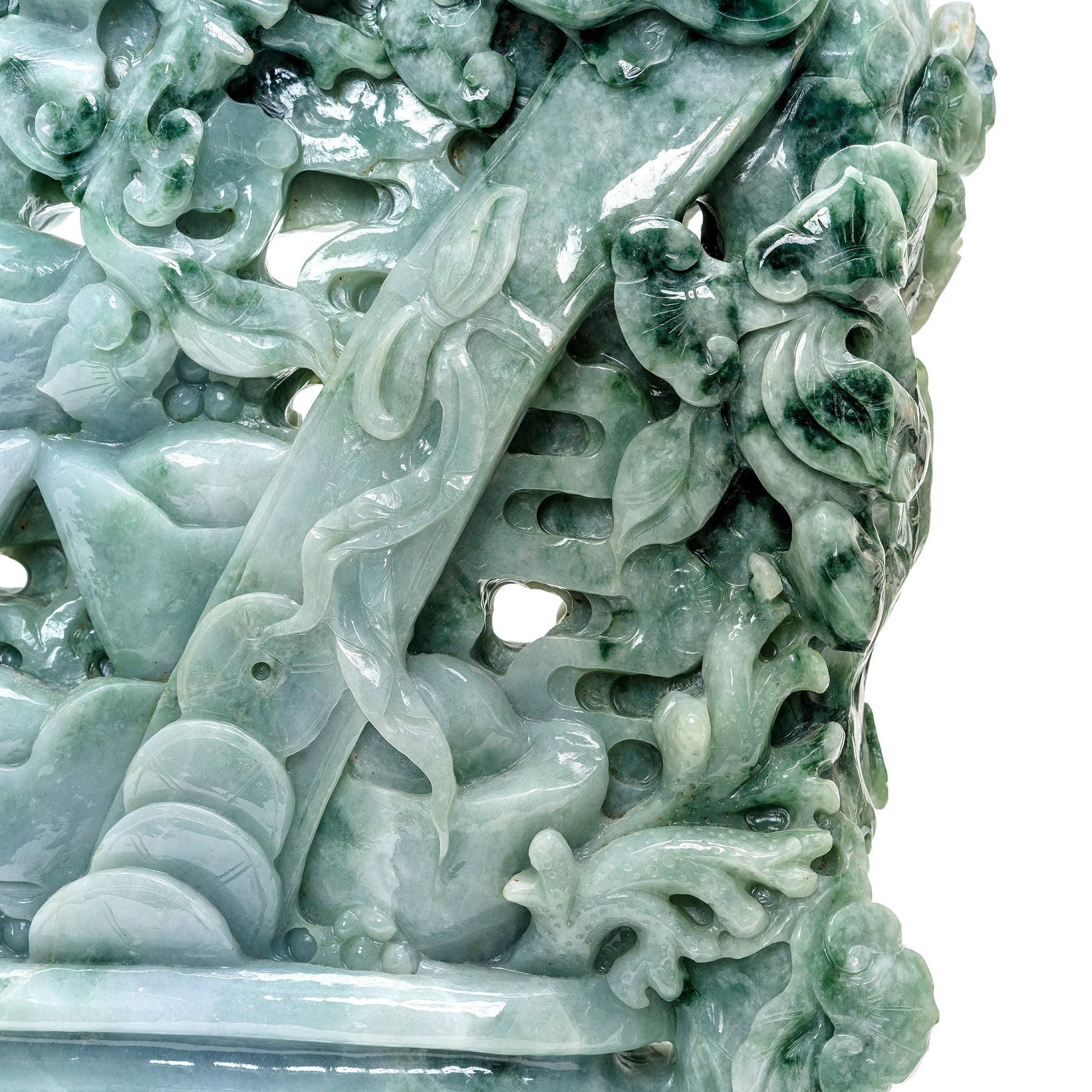 Heirloom-quality jade sculpture with Chinese prosperity symbols.