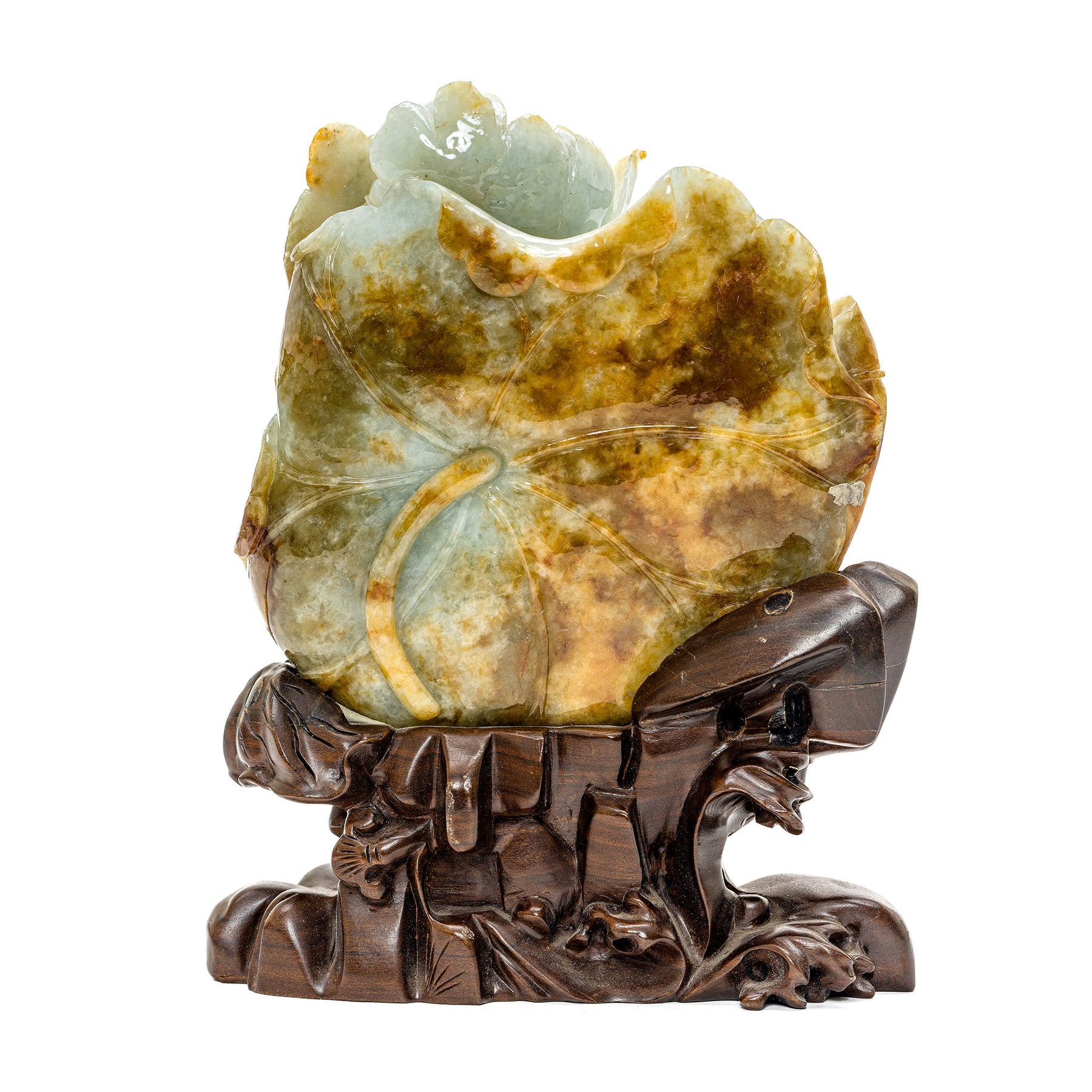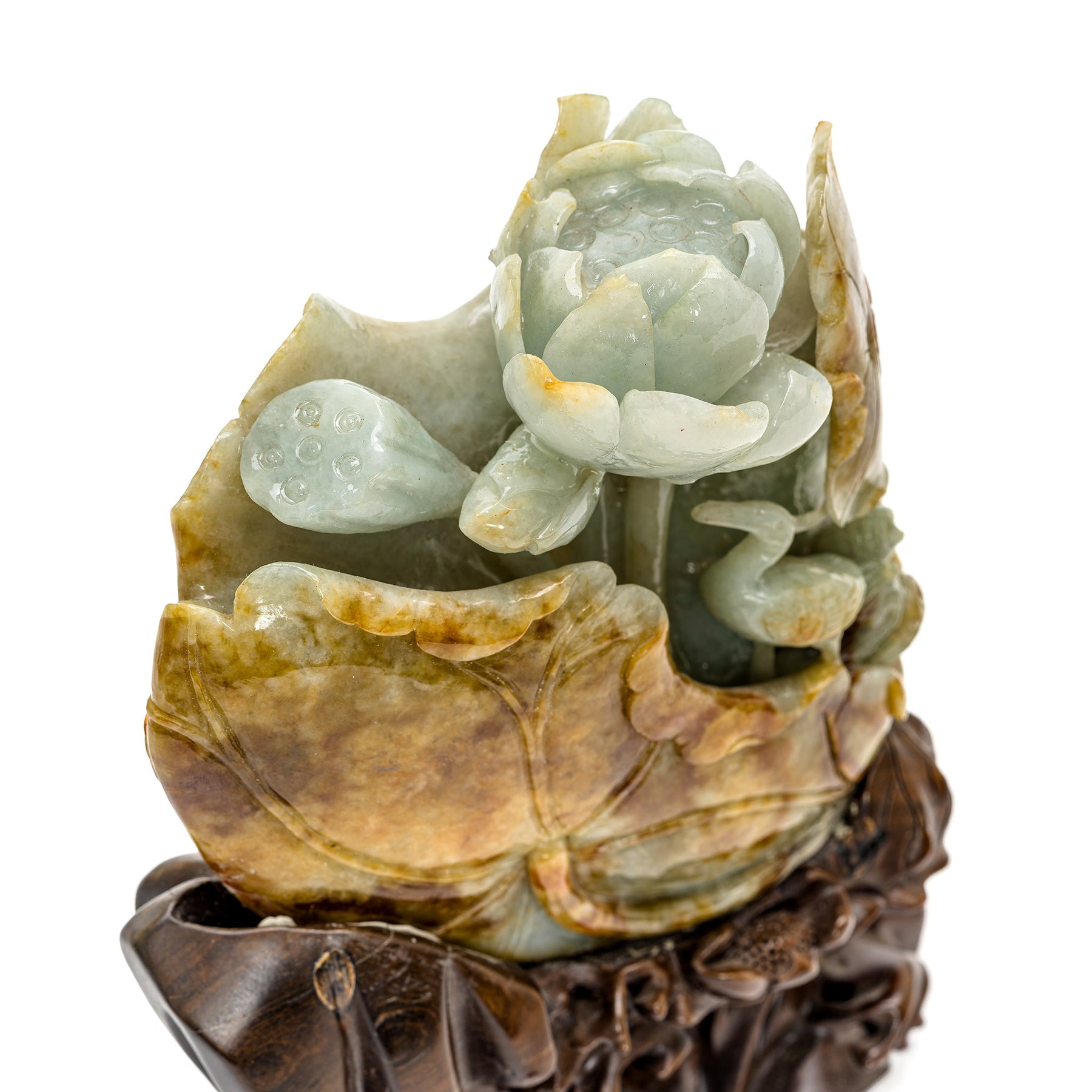 Essence of Serenity in Jade Serene Lotus and Crane Jade Sculpture