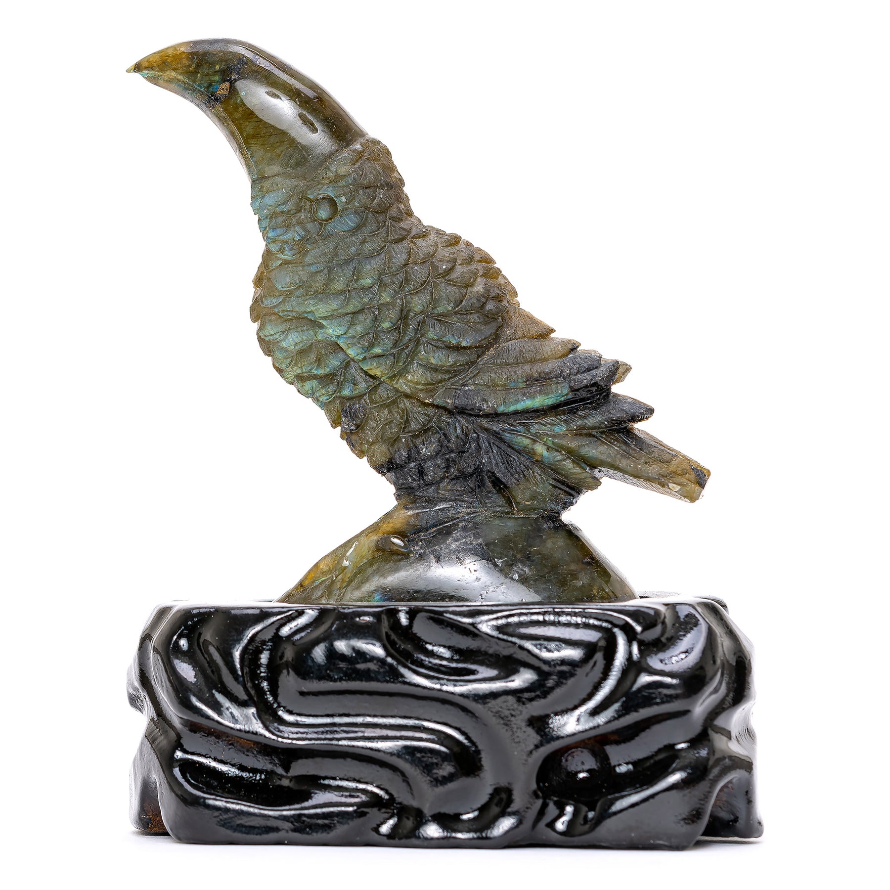 Hand carved labradorite (opal family) sculpture depicting a toucan
