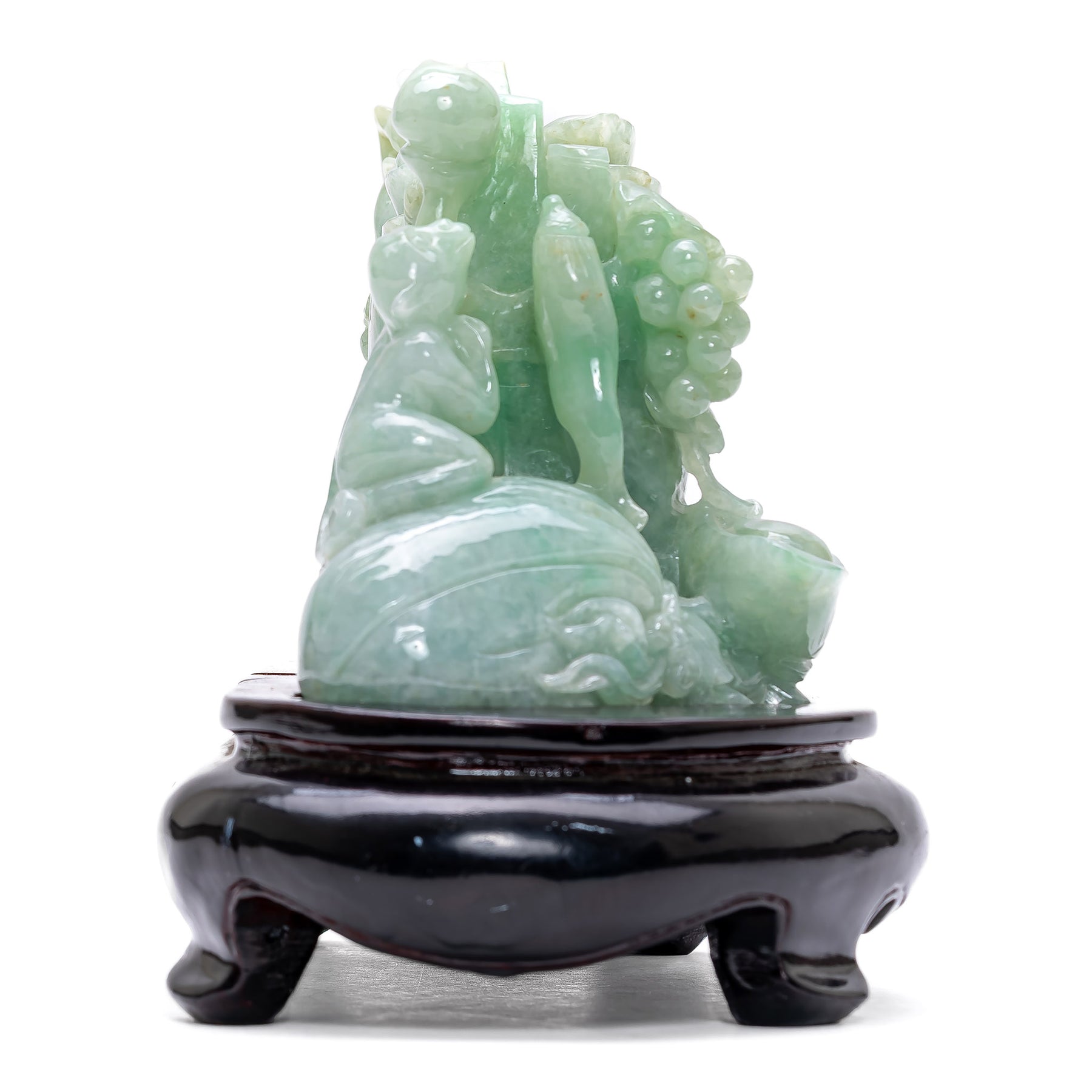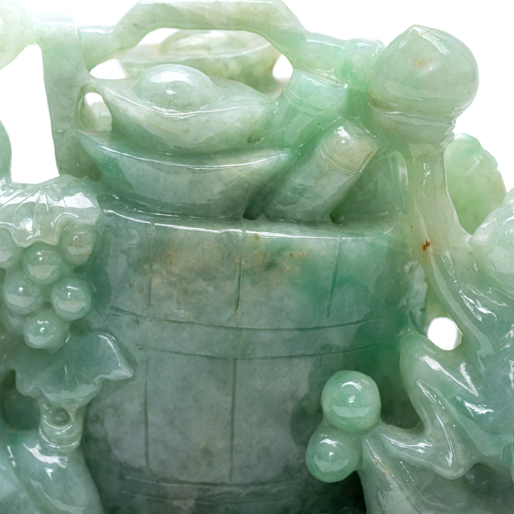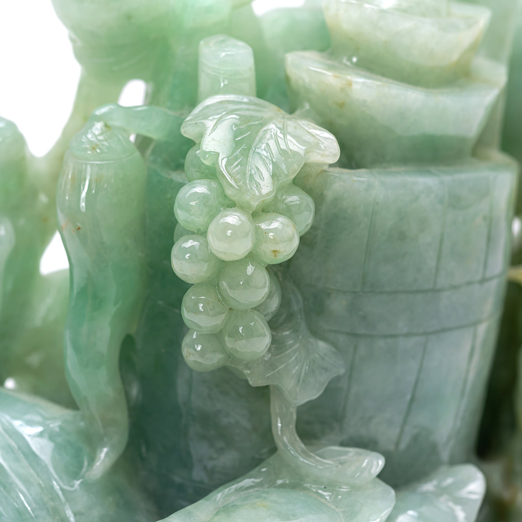 Discover a timeless treasure that will add an air of elegance and sophistication to your home or office. The Small Jade Chinese Monkey Vase with mushroom sprouts and grape clusters is more than just a decorative piece; it is a statement of style and refinement.