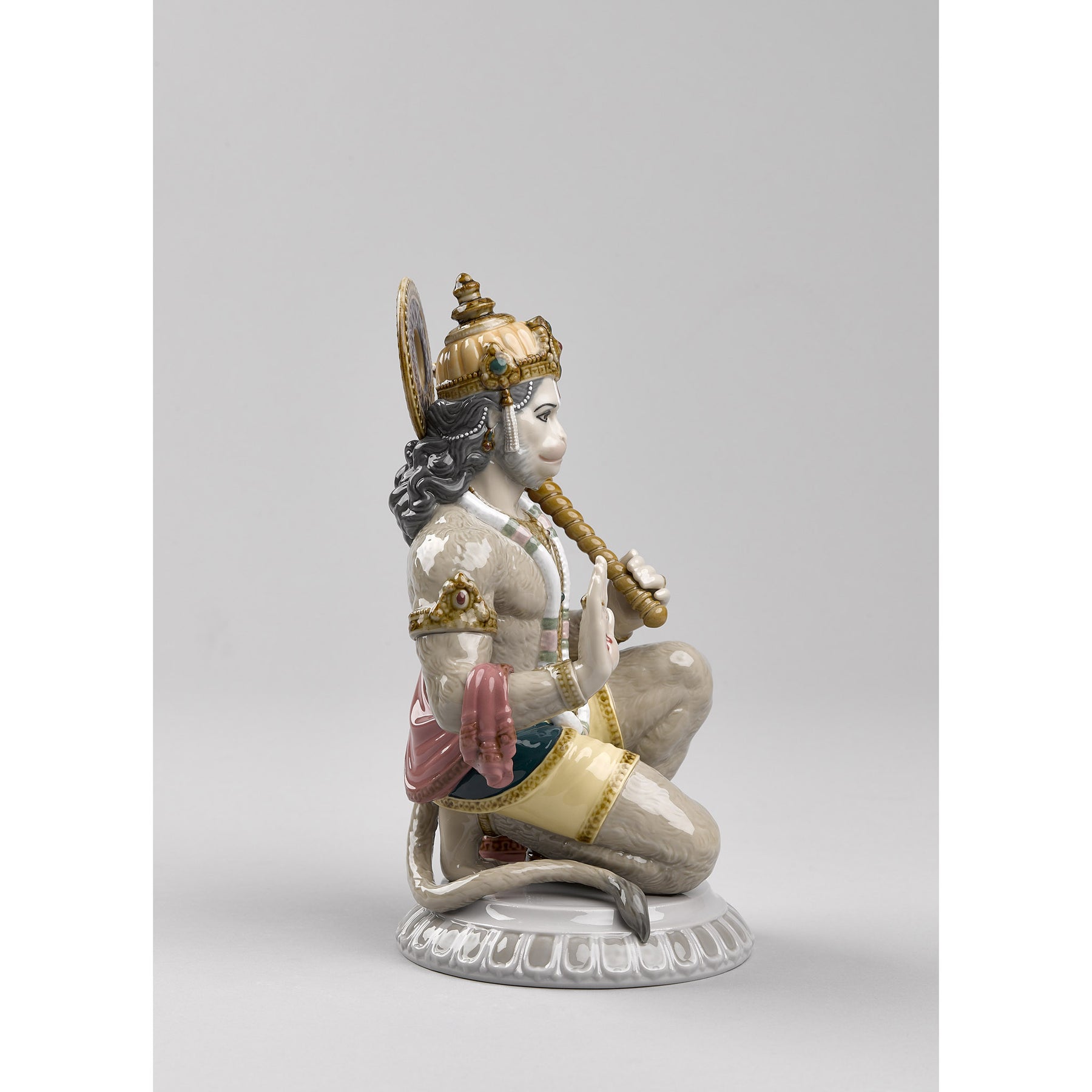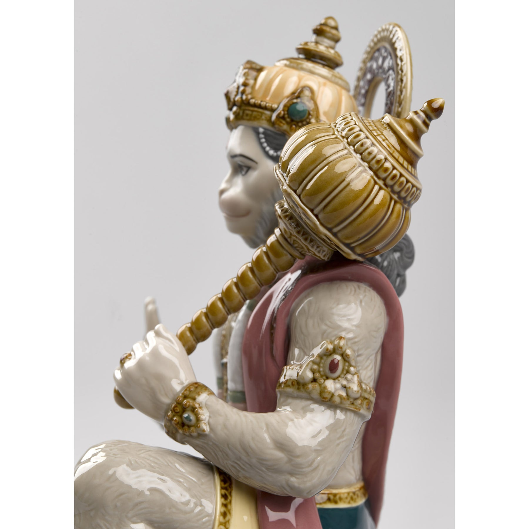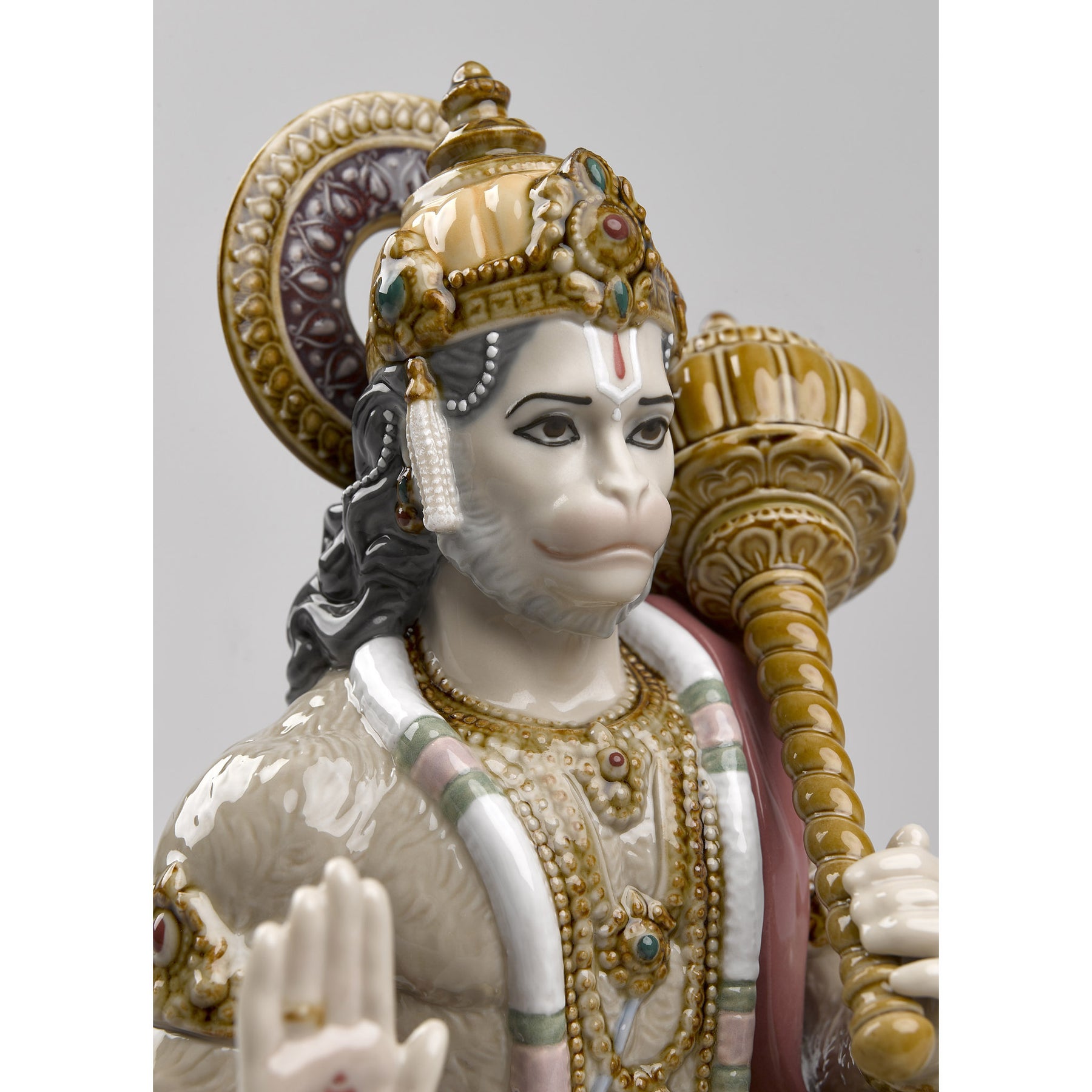 Gloss porcelain figurine of the Monkey God, embellished with enamel and colours which pay homage to the richness of Hindu iconography.