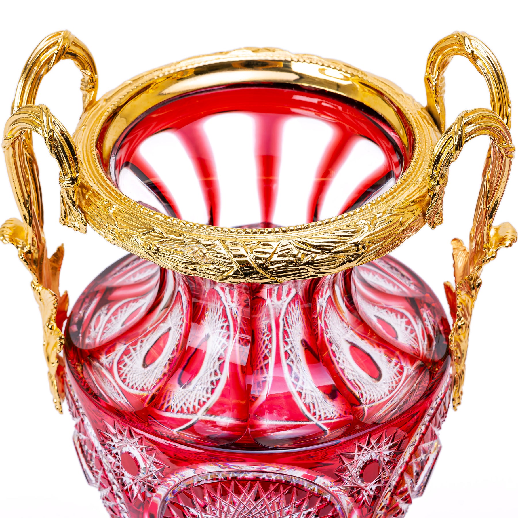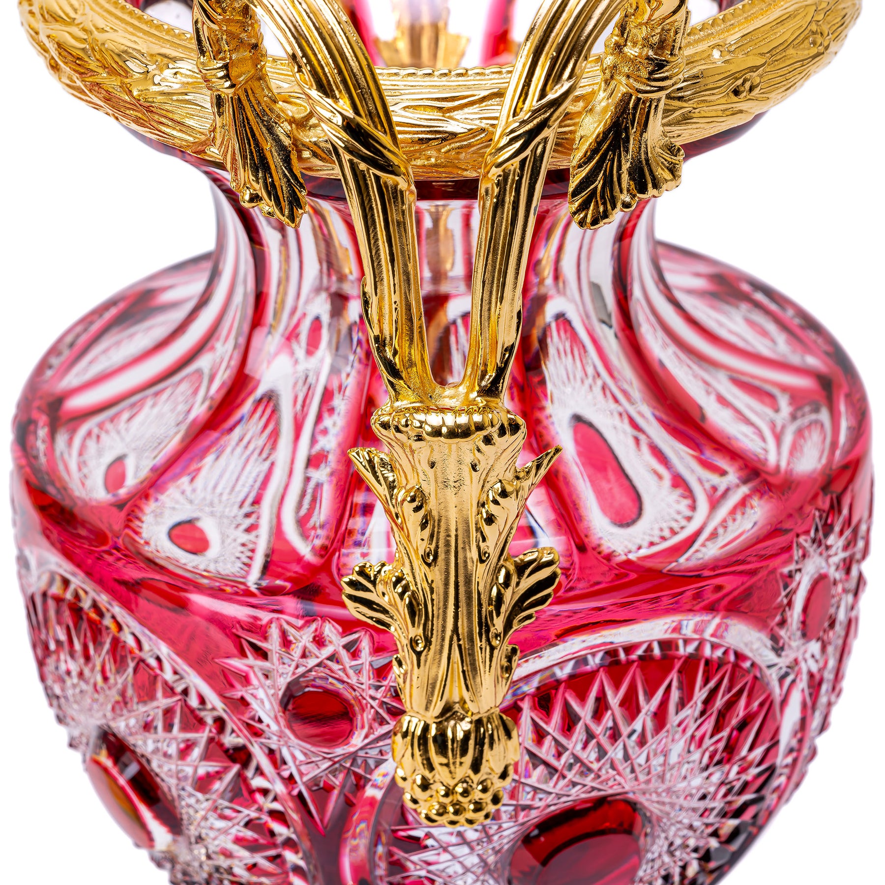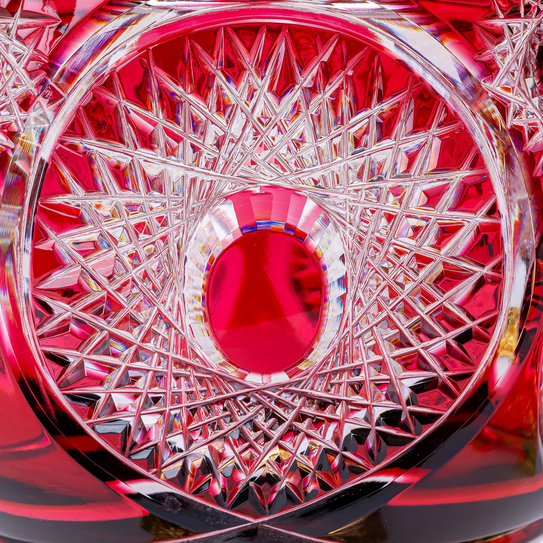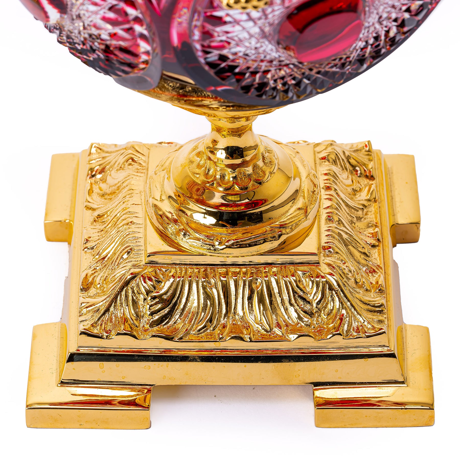Pair of Red Crystals with unique 32 cut star faucet design, 24% lead, red crystal with heavy doré bronze mounts & accents.