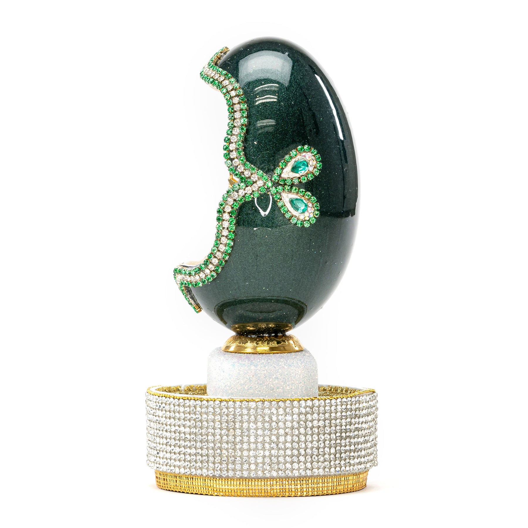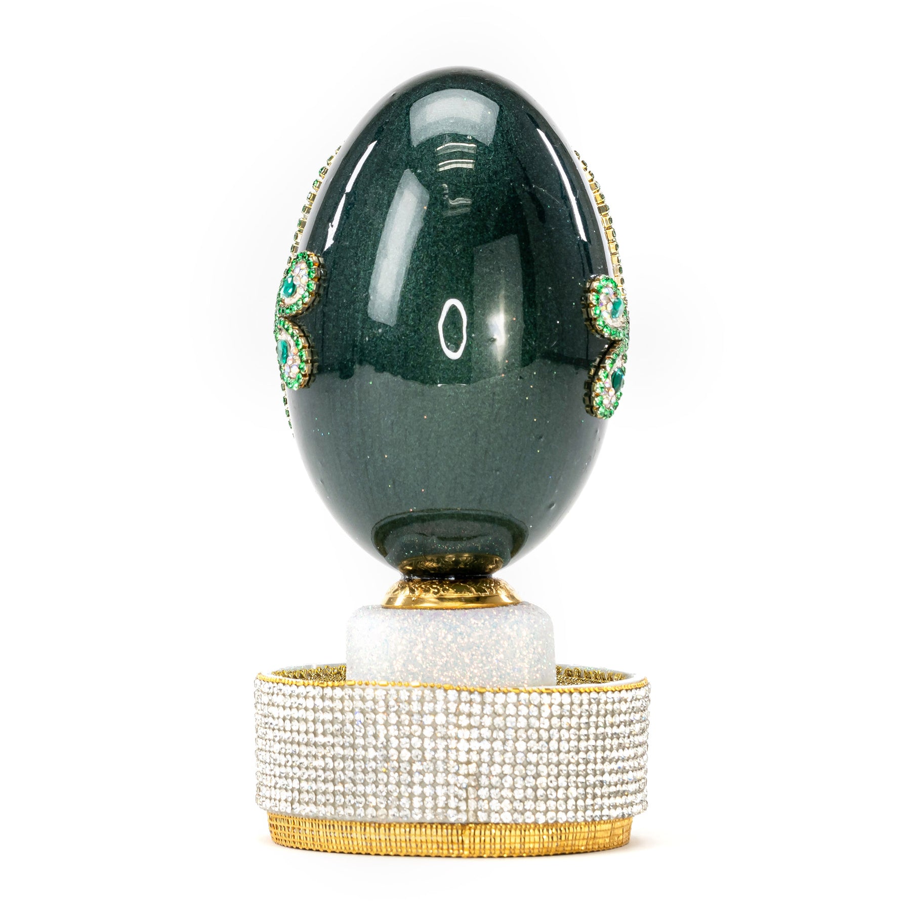 The Egg Fantasy Goose Egg on Crystal Stand IX part of the  exquisite Egg Fantasy collection is handcrafted in the USA from natural ostrich, emu, goose, duck, and quail eggs. Image