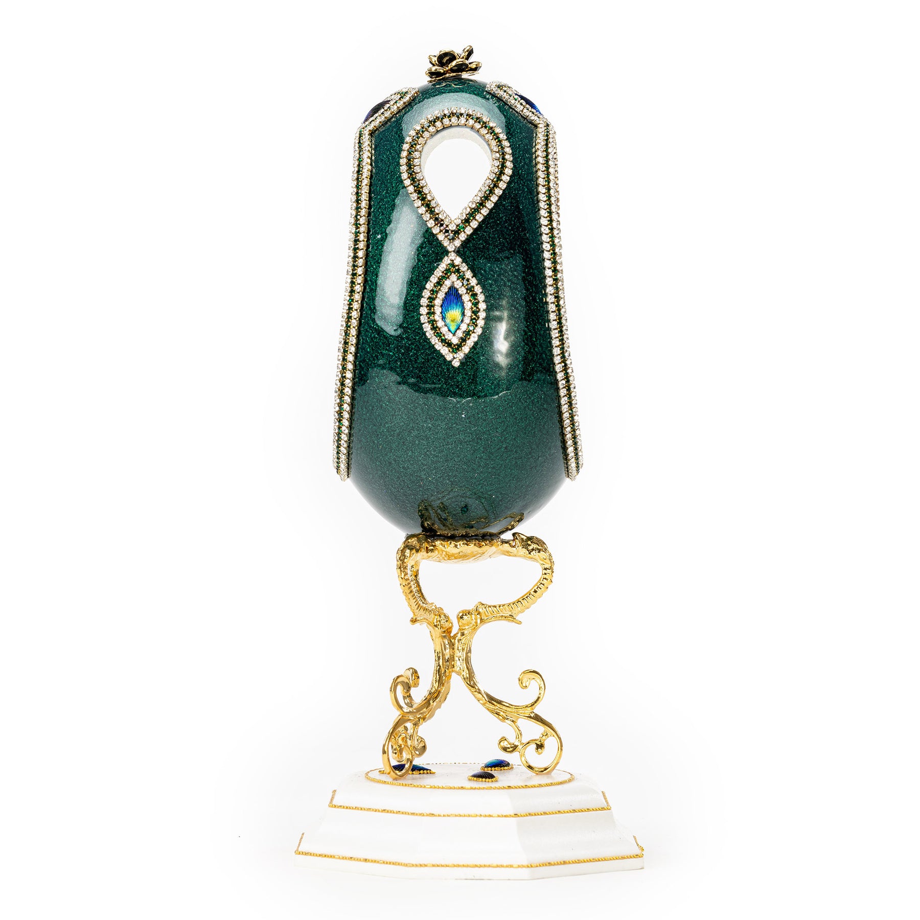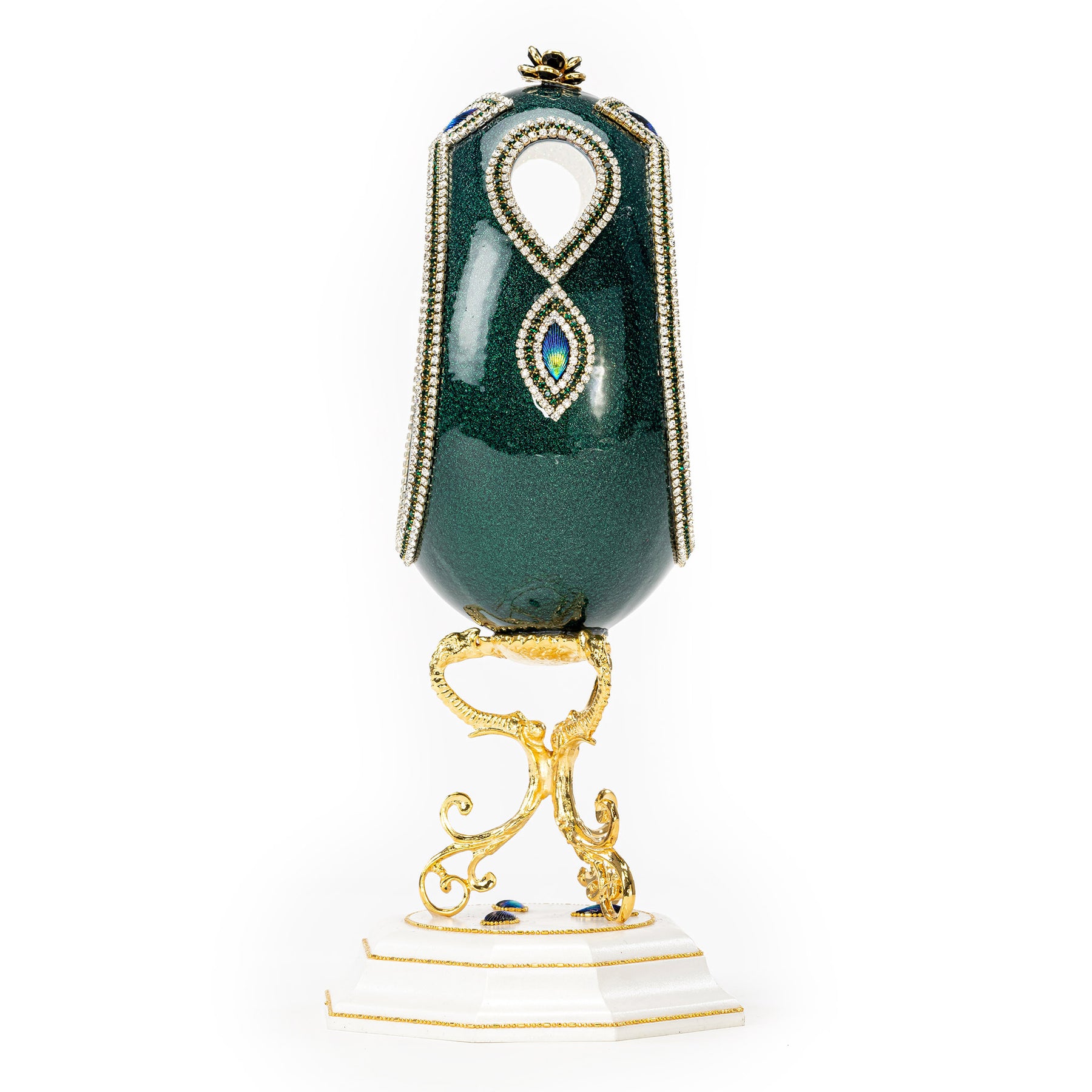 The Egg Fantasy Jewel Box Floral Crystal Drops part of the  exquisite Egg Fantasy collection is handcrafted in the USA from natural ostrich, emu, goose, duck, and quail eggs. Image