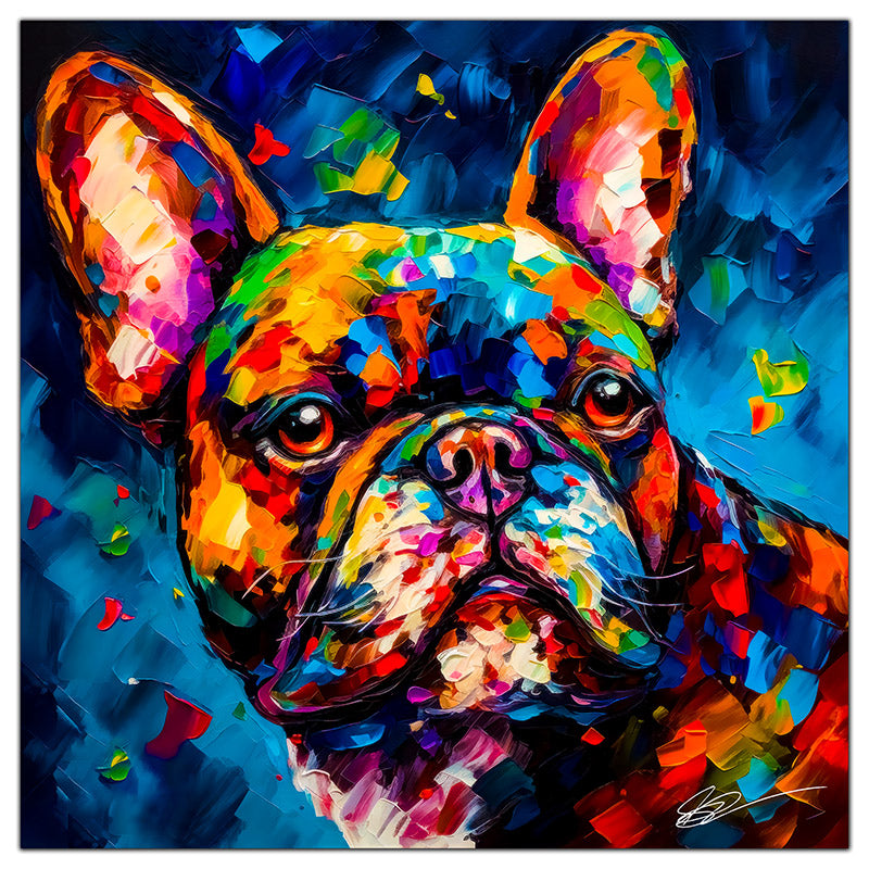 French Bulldog, a captivating and charming furry companion, comes to life in this exquisite palette knife painting style on stunning ChromaLuxe Metal Prints. Limited edition are artist-signed and numbered. This artwork beautifully captures the unique characteristics and personality of the French Bulldog, creating a lasting and modern artwork.