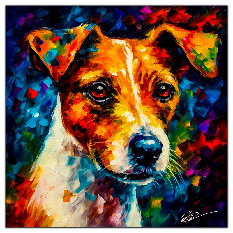 "Jack Russell 07" captures the adventurous and spirited personality of this beloved breed through an expressive palette knife painting technique. The breed’s bright eyes, compact build, and energetic stance are beautifully depicted, making this artwork a delightful addition to any collection.