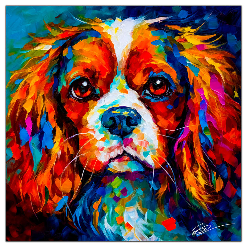 "King Charles Cavalier 03" beautifully captures the affectionate and gentle nature of this beloved breed through an expressive palette knife painting technique. The breed’s flowing coat, soulful eyes, and poised stance are masterfully depicted, making this artwork a delightful addition to any collection.