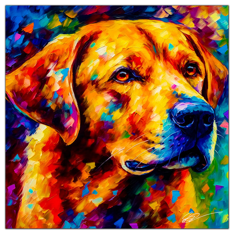 "Labrador Retriever 02" captures the friendly and affectionate nature of this beloved breed through an expressive palette knife painting technique. The breed’s bright eyes, strong physique, and warm demeanor are beautifully depicted, making this artwork a heartwarming addition to any space.