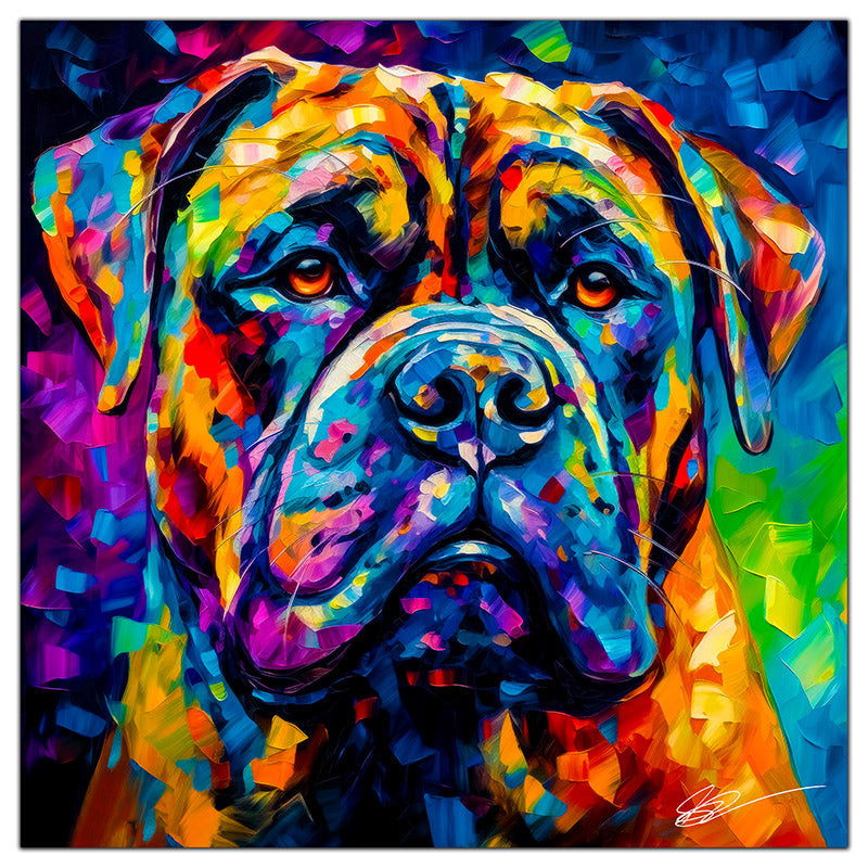 Colorful Mastiff portrait in modern art style, perfect for home decor.